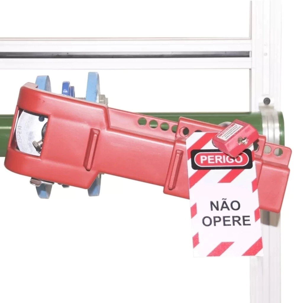 Seu design exclusivo permite fixação firme, impedindo o acionamento acidental das válvulas borboleta durante os trabalhos. Além disso, é compatível com cadeados de bloqueio padrão, proporcionando máxima segurança conforme as normas NR-12 e OSHA.